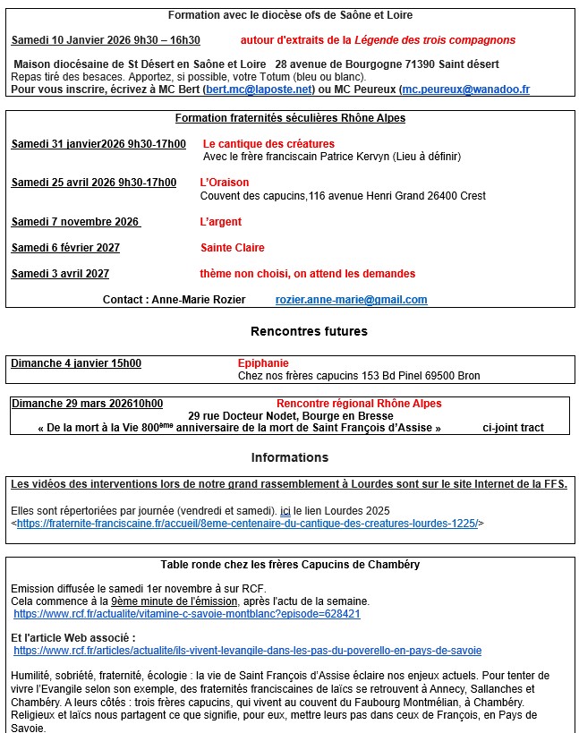 Fraternité séculière Rhône Alpes