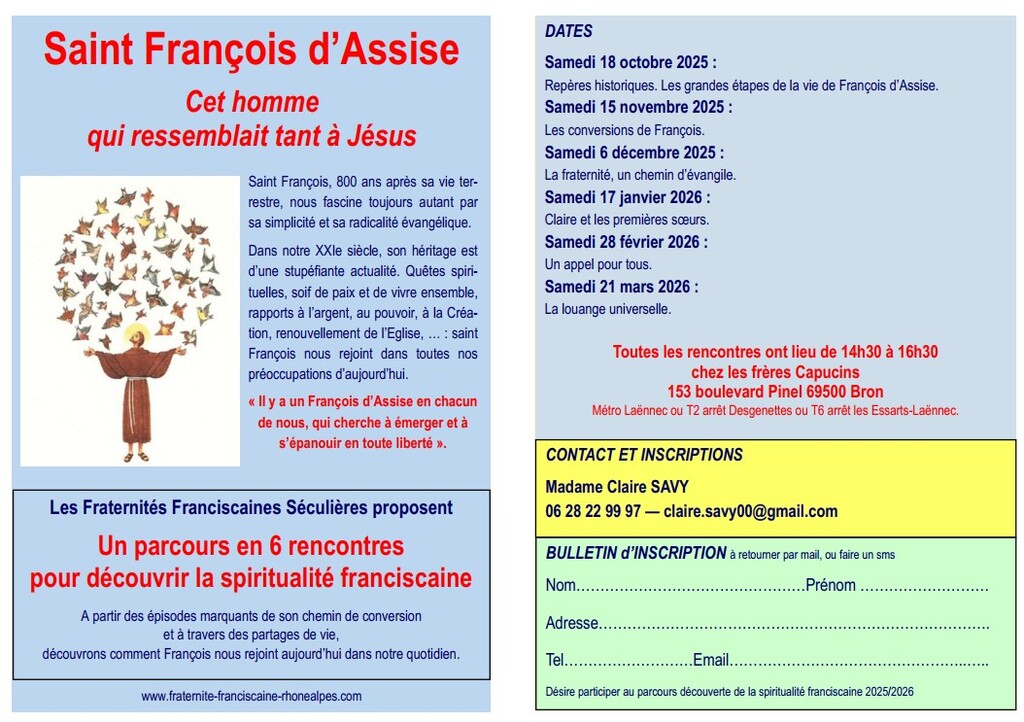 Parcours découverte de la spiritualité Franciscaines dans le diocèse du Rhône