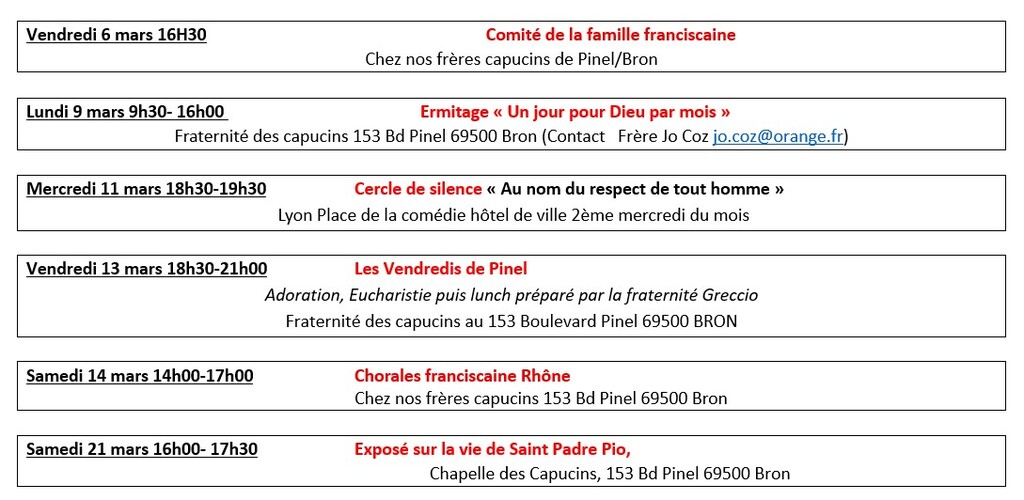 dans la rubrique « évenements franciscains »