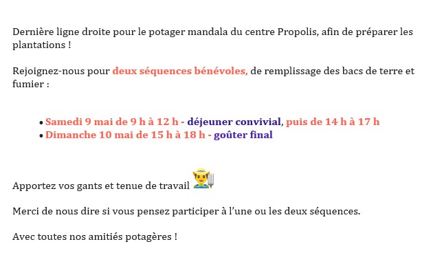 Les sœurs clarisses de Voreppe ont besoin d’aide (faire du tri, nettoyage etc…) Donc cela se tourne vers des personnes qui sont plutôt en forme et plein de courage joyeux et fraternel! Cette aide bénévole leur est très précieuse !