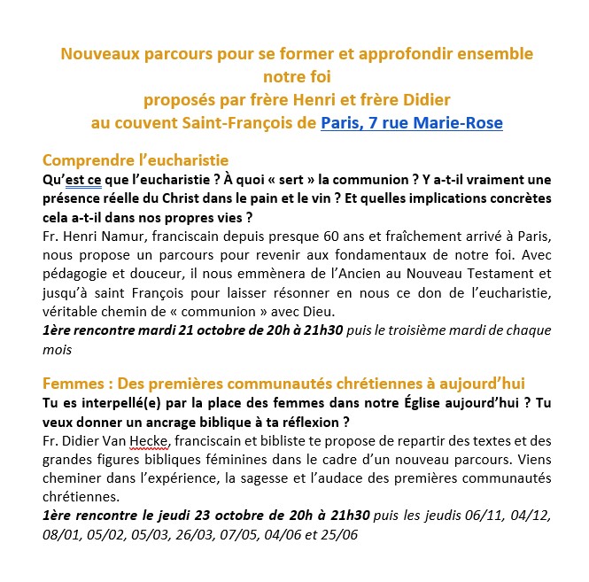 Nouvelles formations chez nos frères franciscains rue Marie Rose Paris